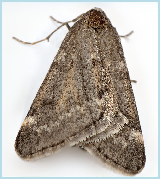 Field Notes: Why they give this moth the common name of "Green" cutworm we can't say. The moths color ranges from deep gray to almost pink. The black fragmented reniform spots are diagnostic on the forewings (red arrow in image). Troy Meadows is not in close proximity with any large agricultural operation so the presence of warm and cold season grasses in the wetland fringes and upland meadows is likely responsible for the moths presence. Reviewing the scientific literature for the species it seems to be a common theme that the moth is routinely found in areas of open marsh, wetlands, and upland waste lots - sounds a lot like Troy Meadows. This moth appeared at our survey lights in June, July, and August so we would consider it to be amongst the Meadows most common moths.