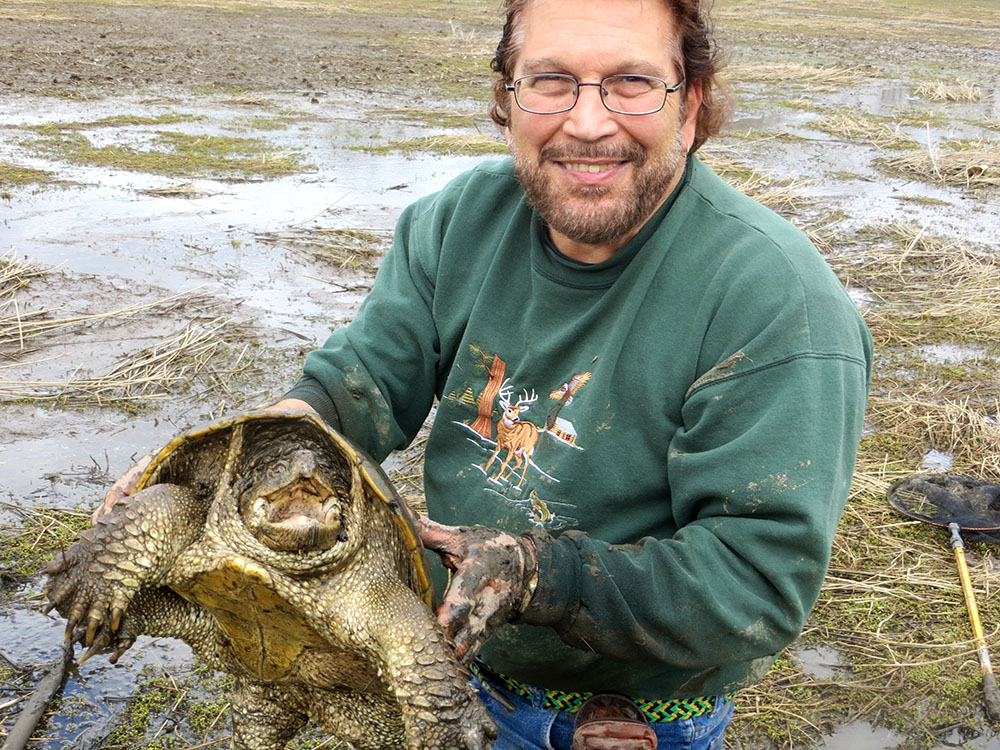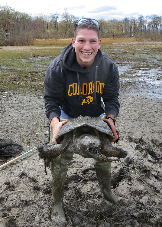 Stephanie Silva with Snapping Turtle at Forge Pond