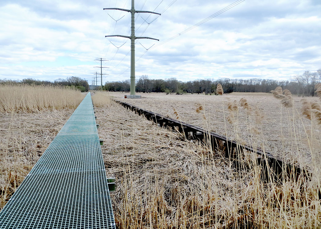 PSE&G new monopoles & new walkway looking east - (April 2014)