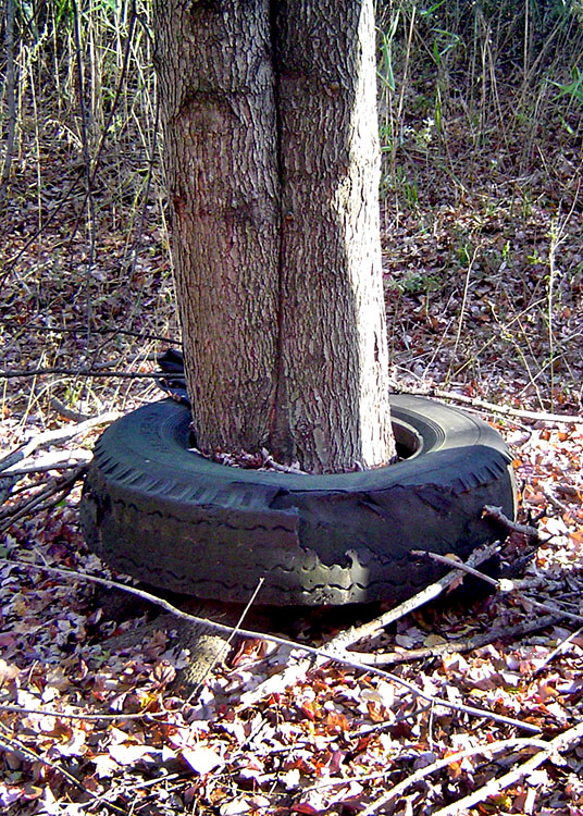 Tree grows up through tire