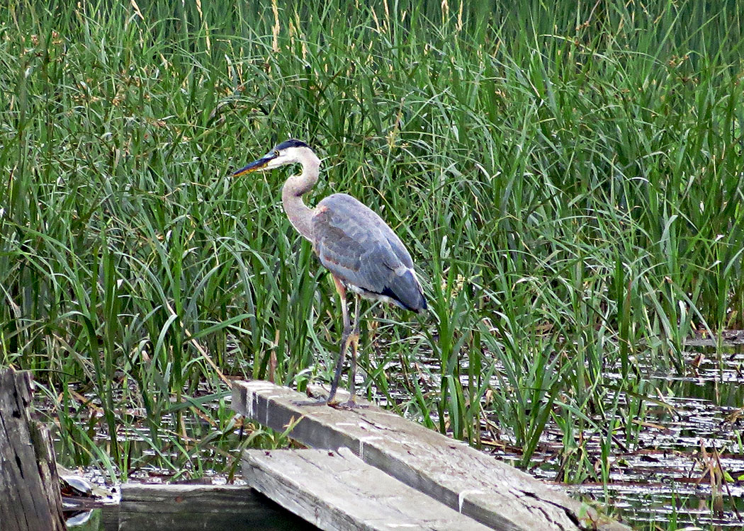 Great Blue Heron on old boardwalk