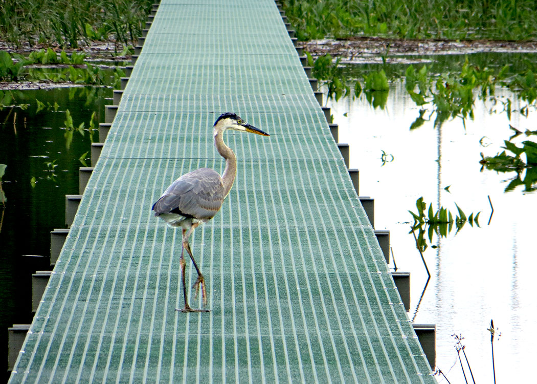 Great Blue Heron on new walkway "green mile"